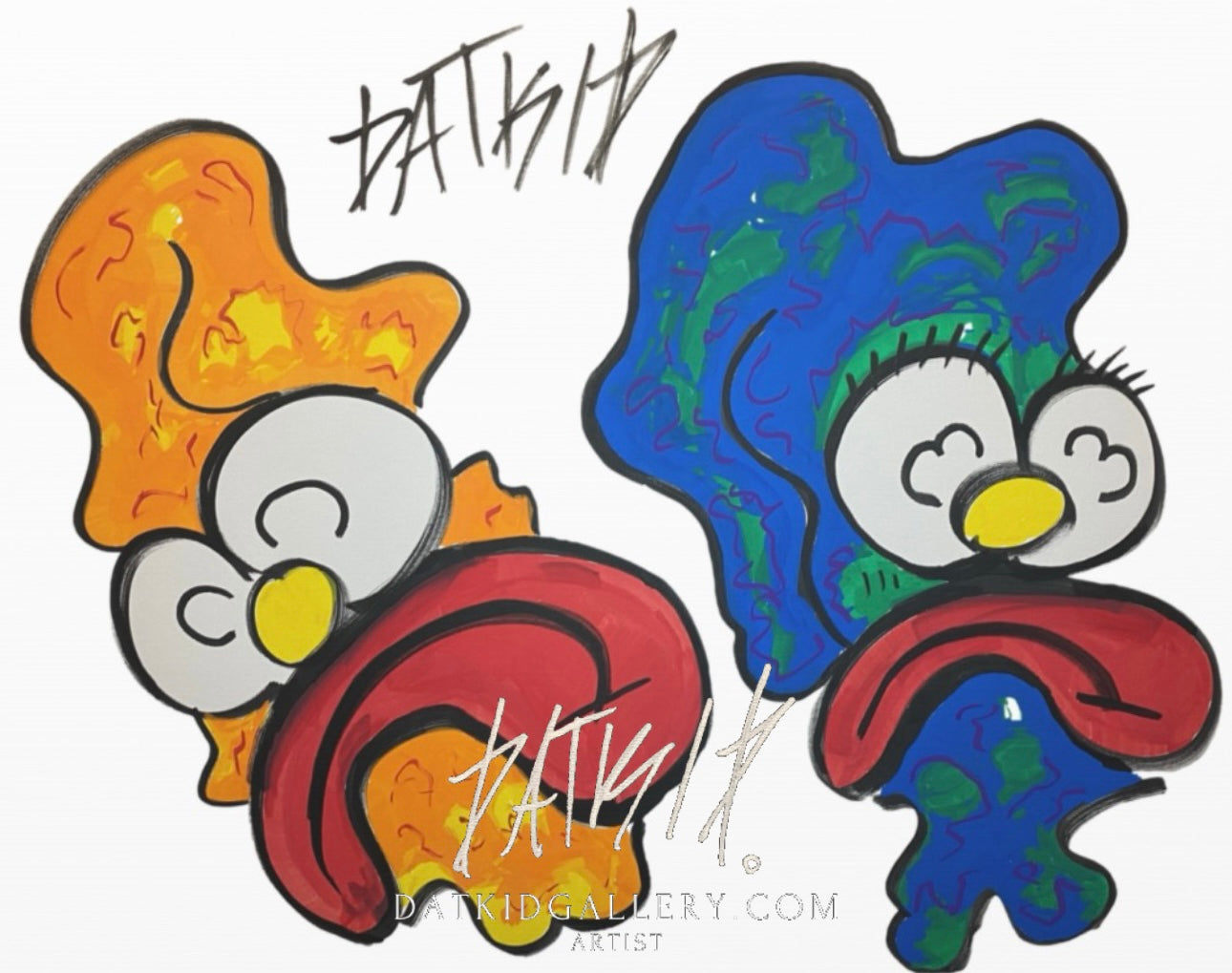 Above them, the graffiti tag “DATKID” marks the piece with an authentic urban signature, staying true to the roots of street culture. Heart Break is more than an image—it’s an experience, a reflection of the highs and lows that come with love and the aftermath of its collapse.