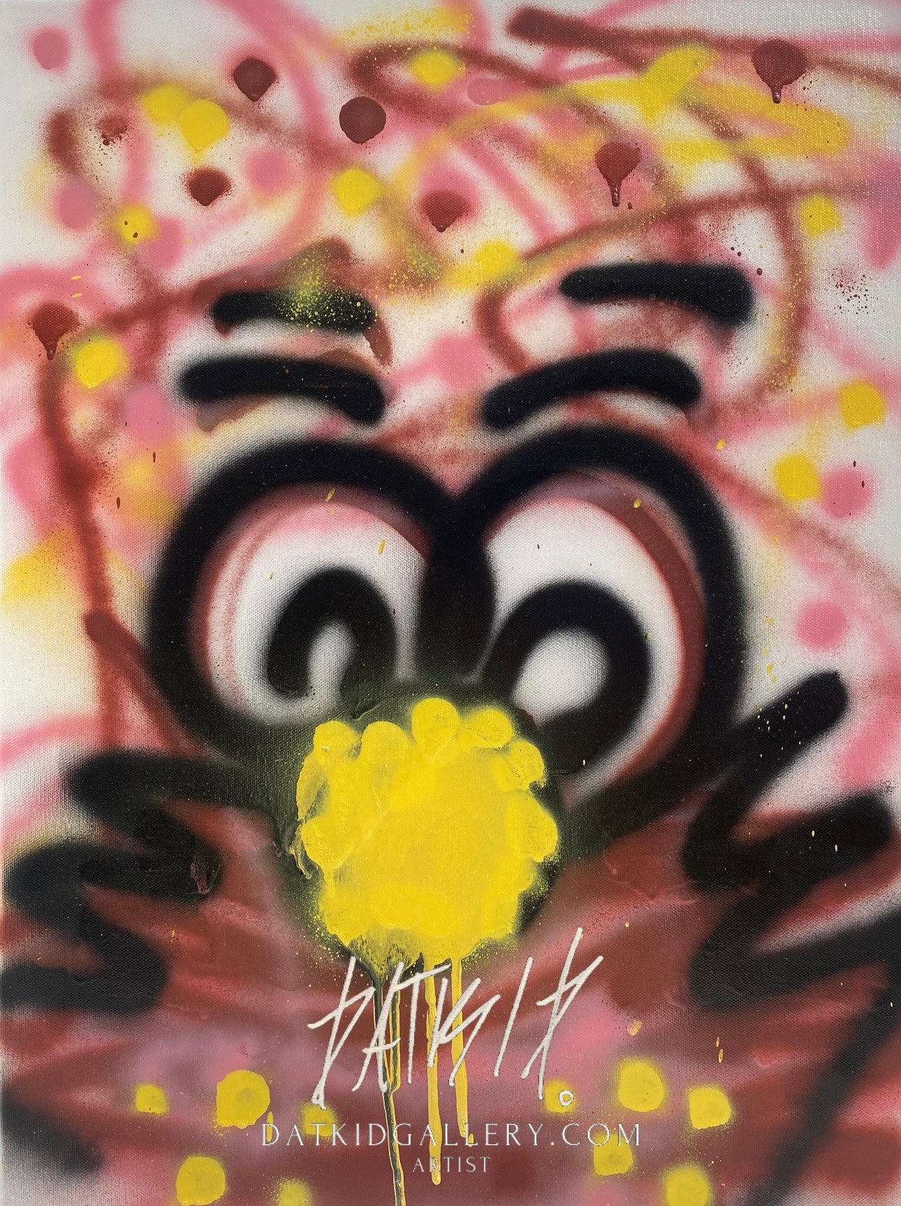 Datkid is an emerging artist from Seattle, Washington. After joining the military at 20, he spent time in the United Kingdom, where he fell in love with the street art and atmosphere of the city. Combining his passion for graffiti, hip-hop, and clothing design, Datkid brings real emotion and rebellion to every piece he creates.