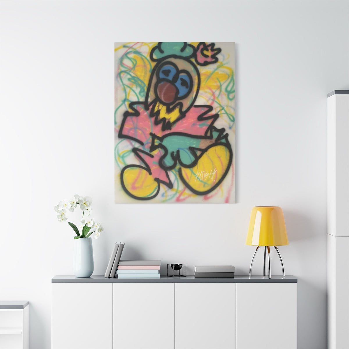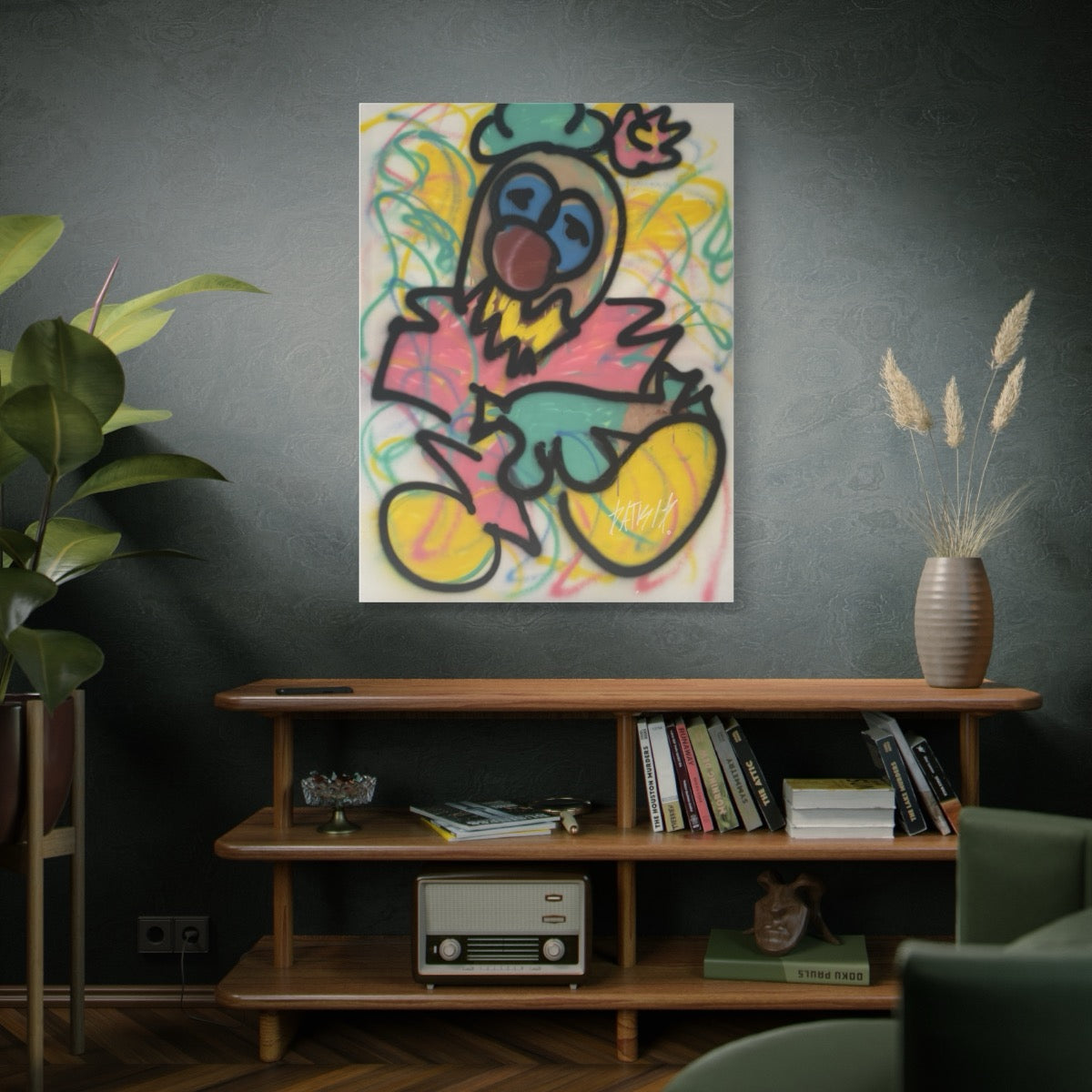 Pastel Panic throws you into a chaotic dreamscape where joy and madness meet. A twisted clown figure bursts forward in vibrant shades of pink, teal, and yellow, tangled in layers of energetic scribbles and raw emotion. The oversized shoes, wild expression, and pastel palette give the piece a playful tone—until you look closer and catch the edge of unrest behind the smile. This isn’t just a character—it’s a mood, a breakdown, a memory disguised in color.