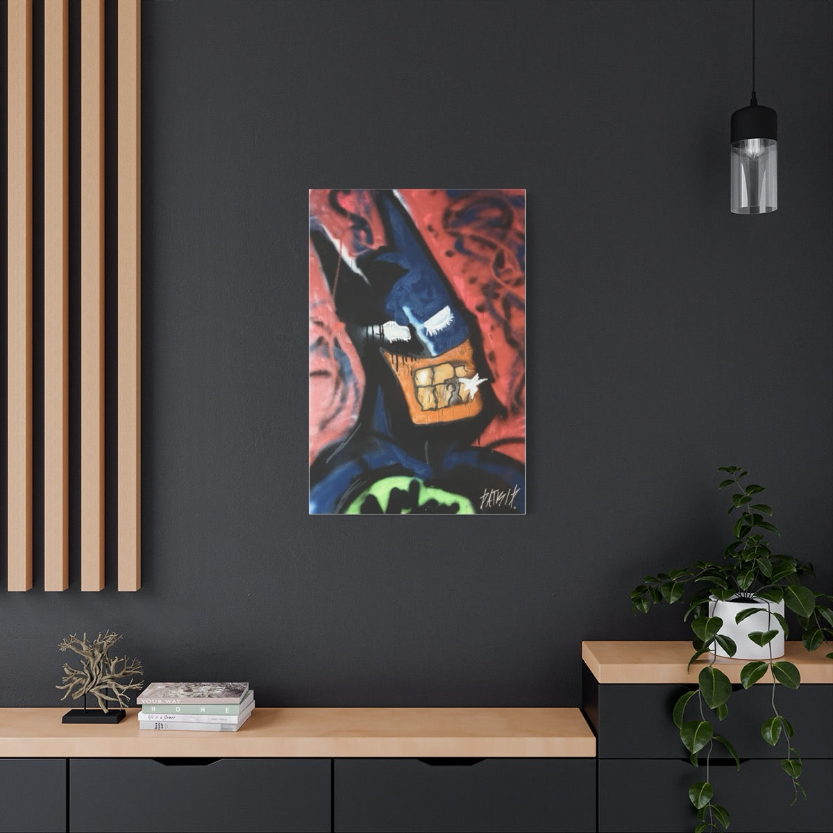 Bring the streets into your space — where darkness and grit meet a spray-painted smile.